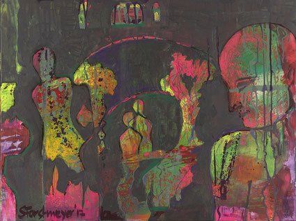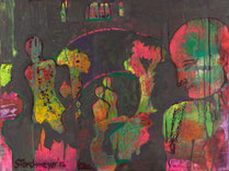 Acryl, Ölkreide, Schwarzlichtfarbe auf Leinwand 2022