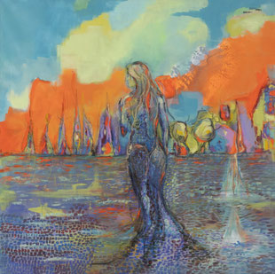 Acryl, Ölkreiden, Fototransfer auf Leinwand 2022
